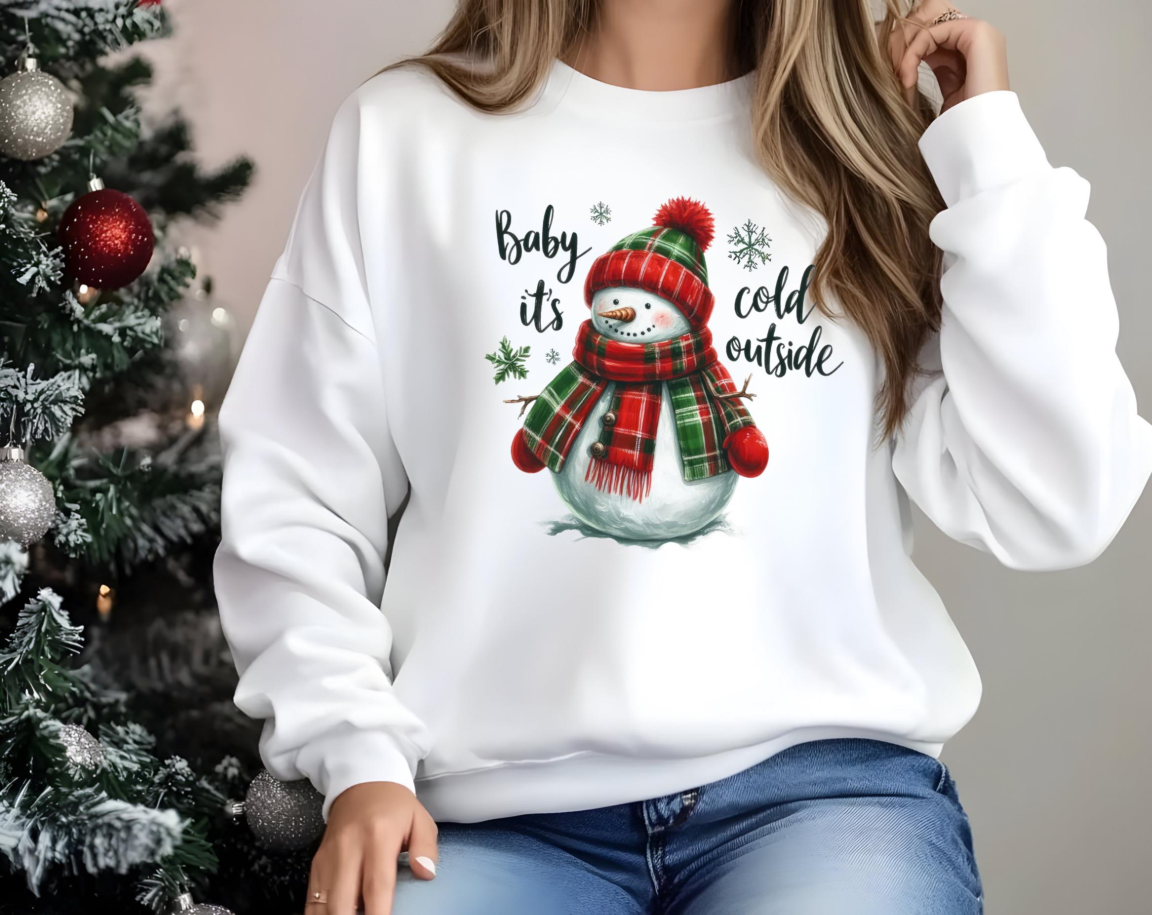 Baby It's Cold Out Snowman Sweatshirt with DTF image.