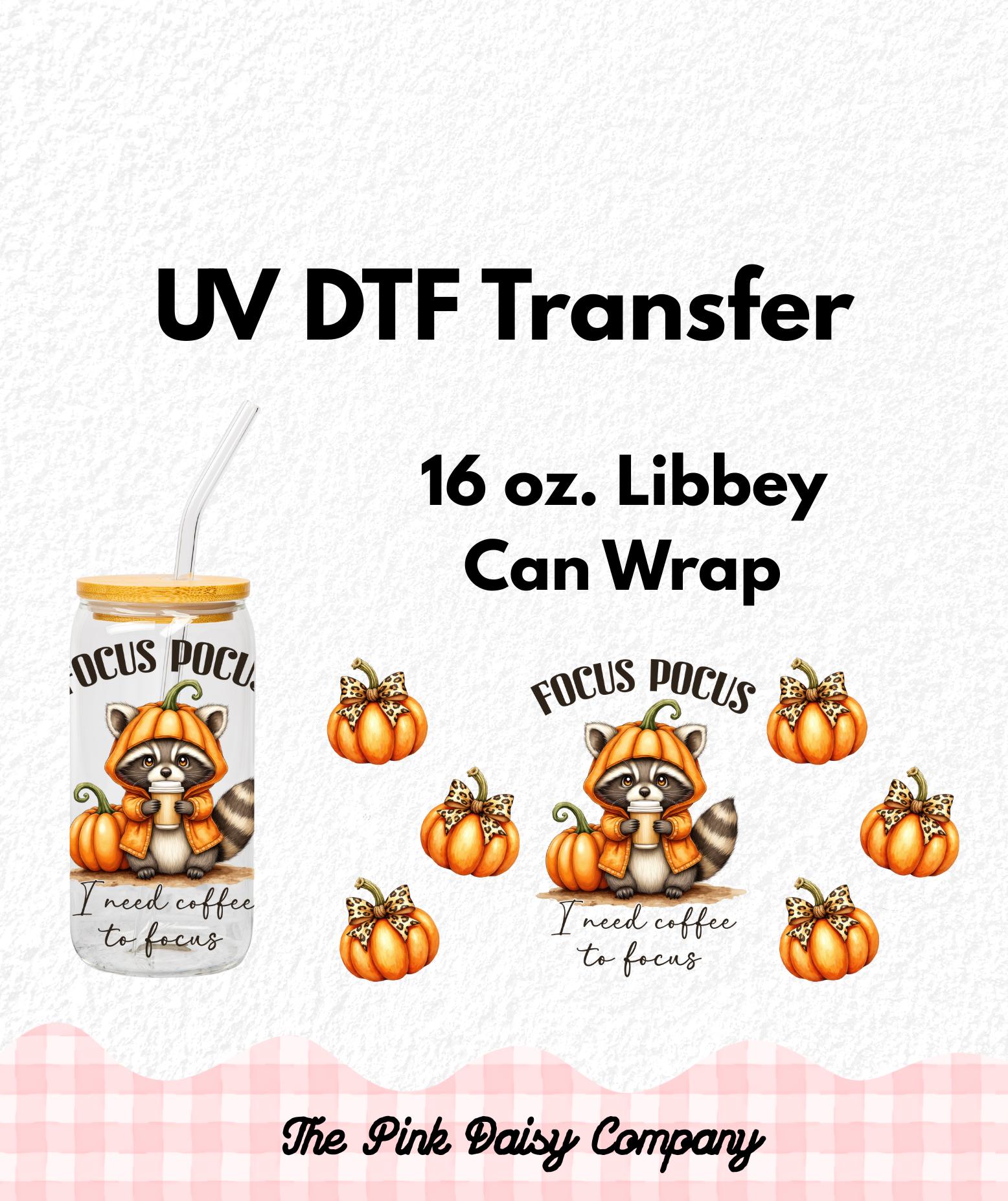 Focus Pocus Fall Raccoon 16oz. UV DTF wrap