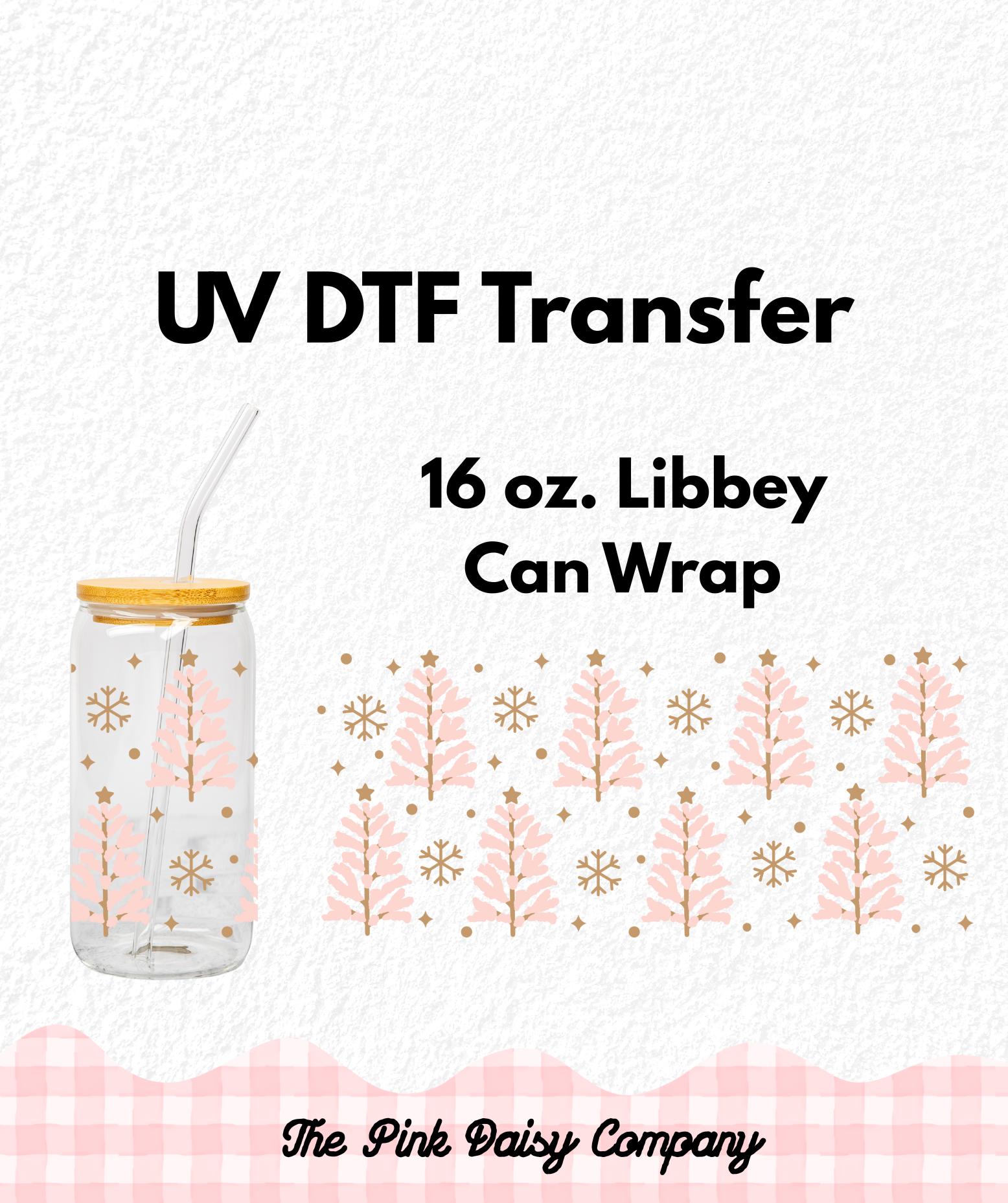 Pink Trees and Snowflakes 16oz. UV DTF wrap