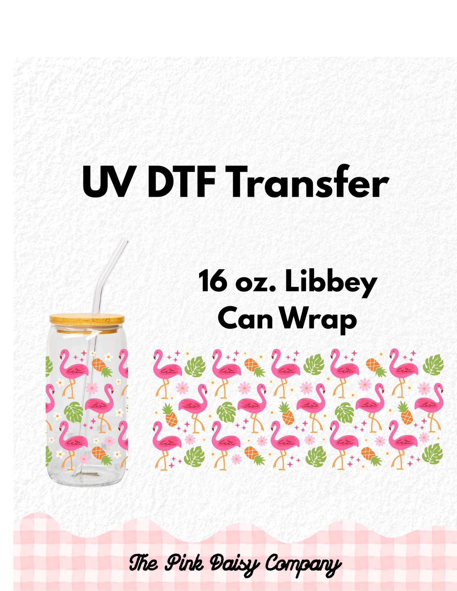 - UVDTF wraps are measured and cut for 16oz Libbey glass cans (measuring 9.5" circumference). **Please note: not all manufacturers glass cans are the same