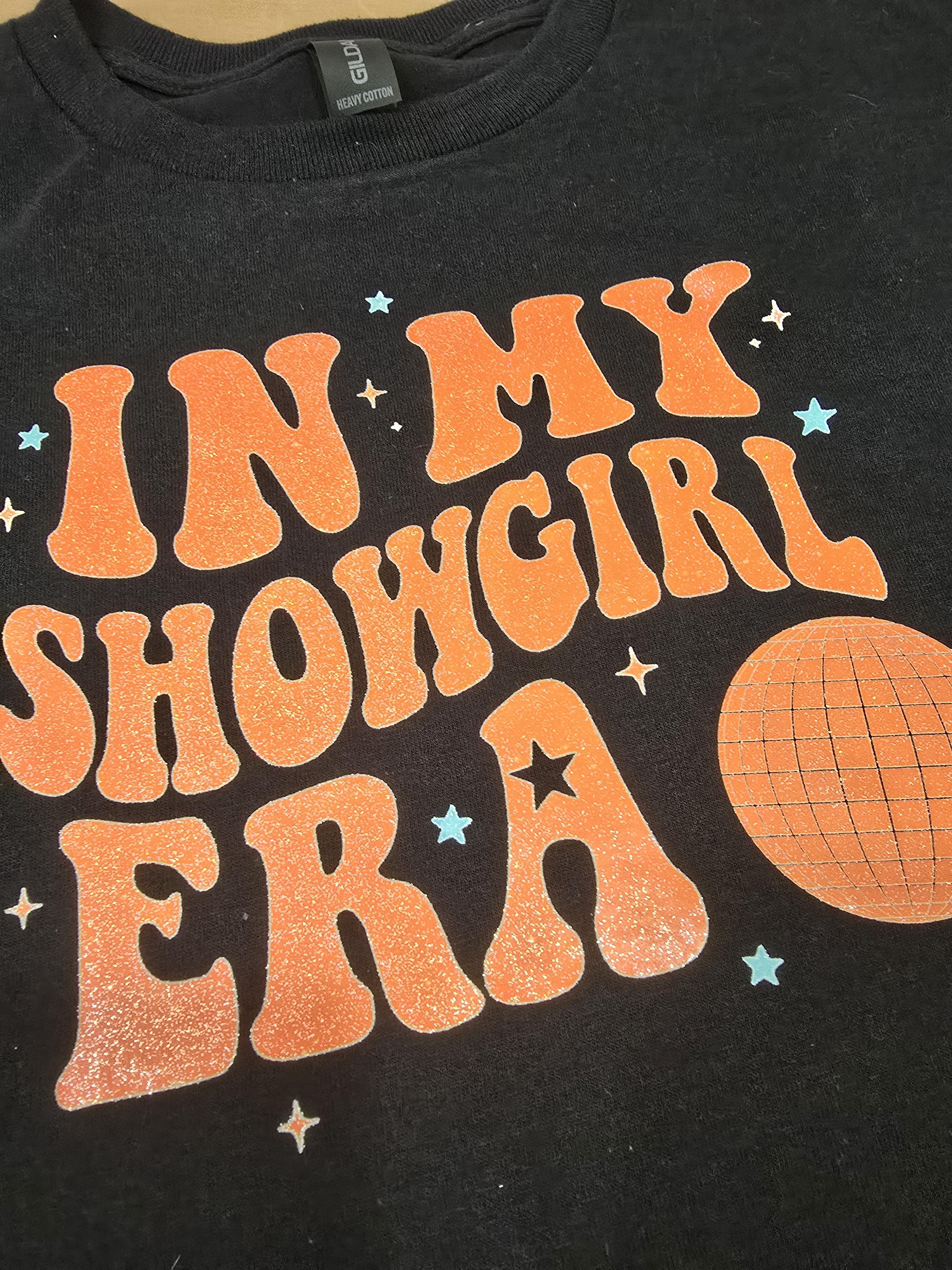 In My Show Girl Era Adult T-shirt w/DTF Ink Image Regular Matte or Glitter Finish