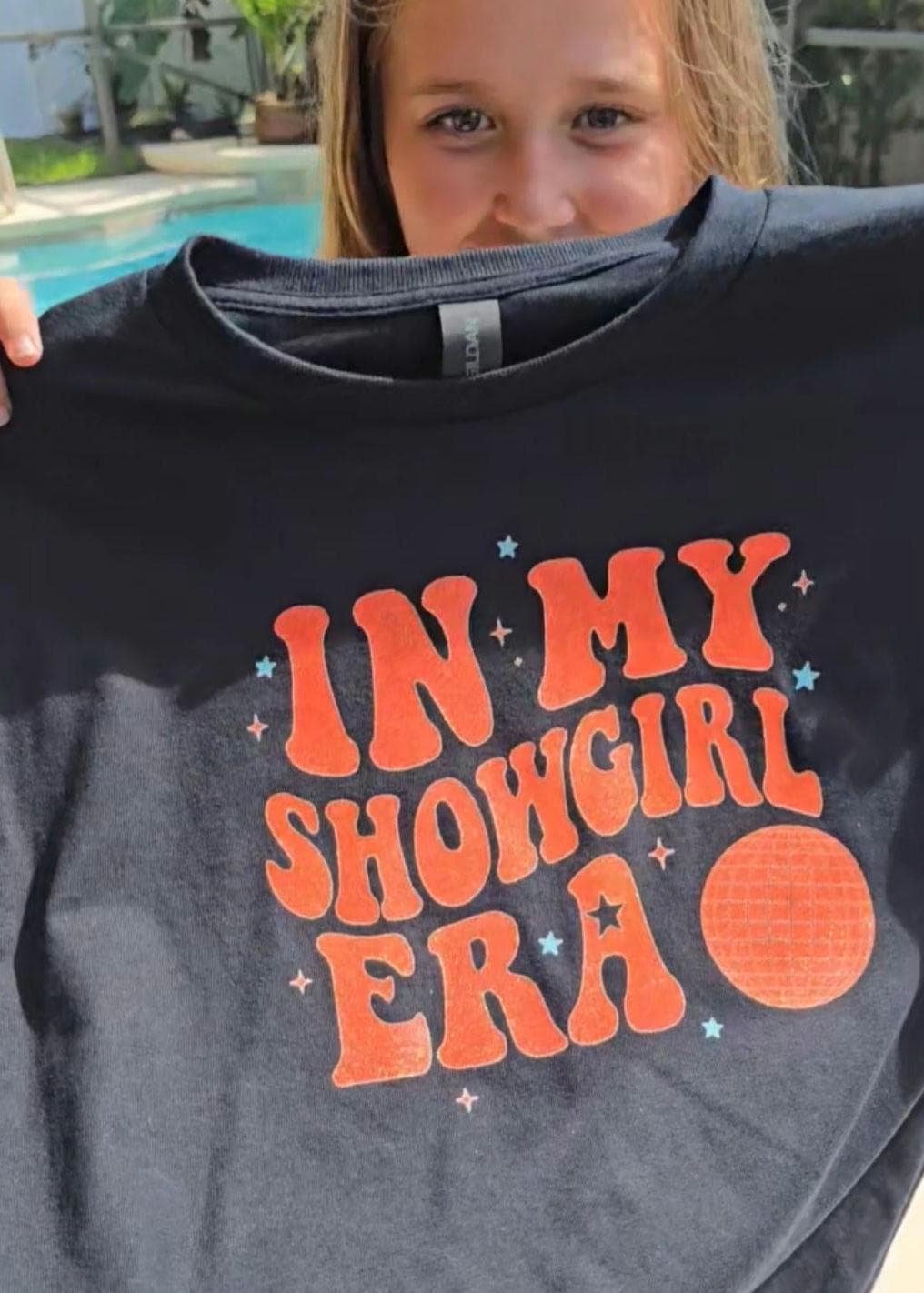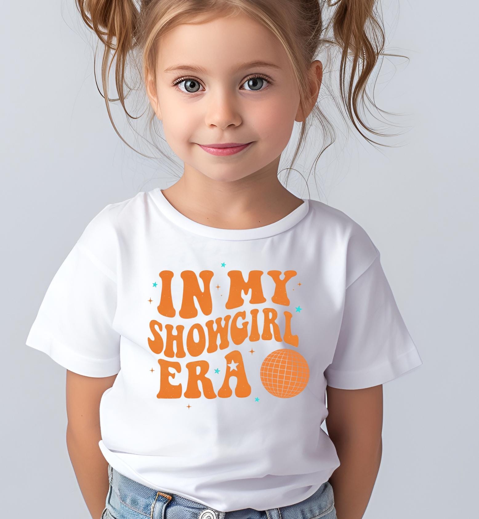 In My Show Girl Era Youth T-shirt w/DTF ink image Regular Matte or Glitter Finish
