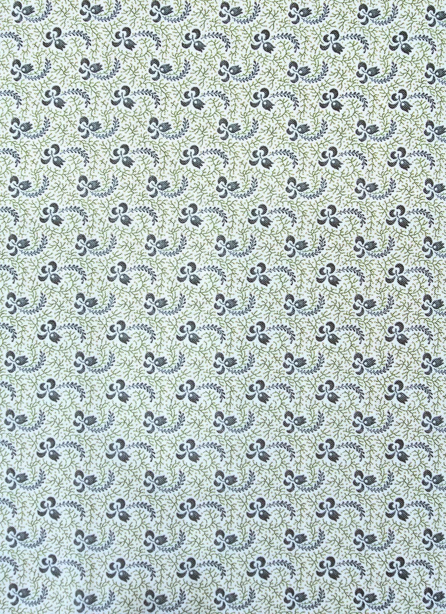 Description: The Old Sturbridge Village Collection White background with green and blue print