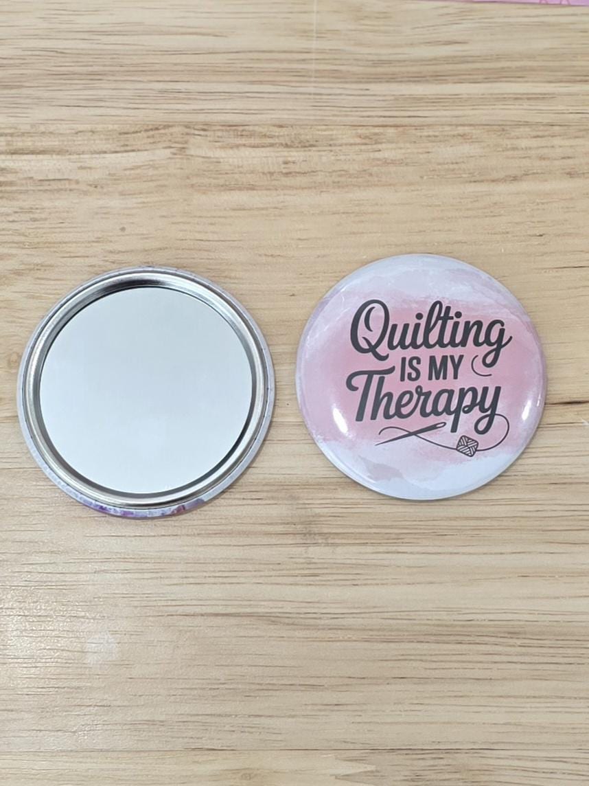 Choose from either a magnetic back, mirrored back, or button Magnet and mirror each measure approximately 2.25" diameter.